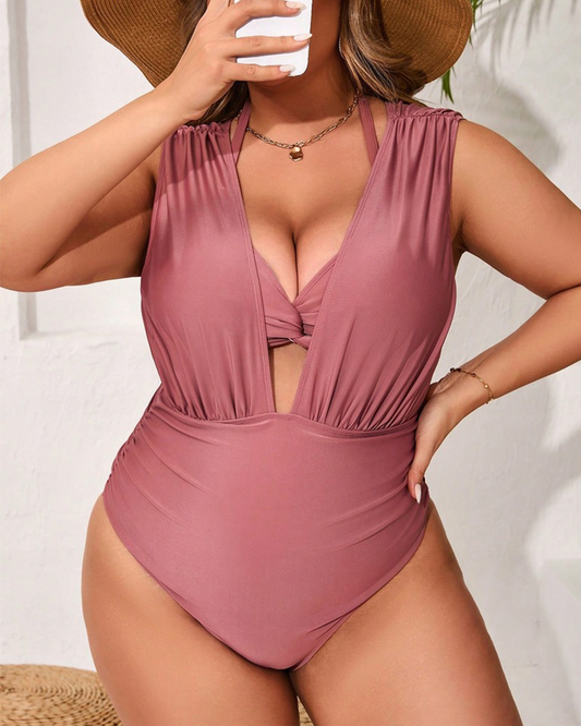 Shesways® Plus Size Bikini Top & Plunging Ruched Swim Set