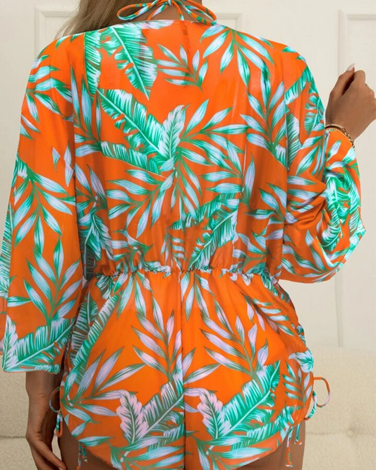 Shesways® 3-Piesce Tropical Bikini Set – Halter Top, High-Waist Romper & Swim Panty
