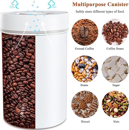 OSTOE Coffee Vacuum Canister Coffee Bean Storage Coffee Jars for Counter Vacuum Seal Container Airtight with Electric Airtight Lids, Stainless Steel Coffee Canister for Ground Coffee 1.8L White