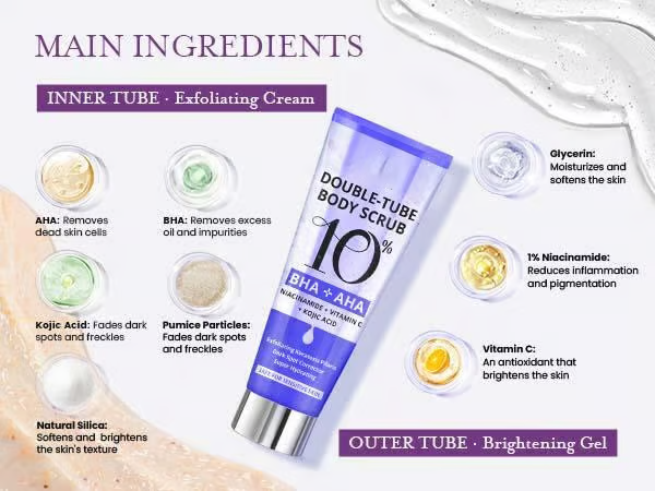 Formulated with apowerful combination of 10% Salicylic Acid (BHA) + AHA(Glycolic Acid),rapidly reducing skin bumps-saygoodbye to "strawberry skin" or "chicken skin"