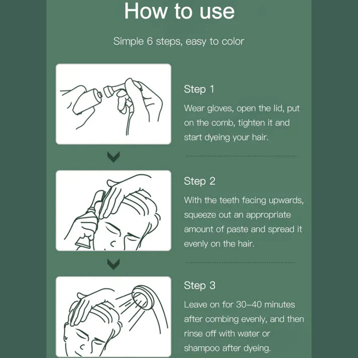 Our hair dyeing comb offers a selection of three natural and versatile colors to suit your style and preference. Choose from black, black-brown, and chestnut-brown shades to achieve your desired look. Whether you're aiming for a dramatic transformation or subtle color enhancement, our comb ensures that you can achieve the perfect shade effortlessly. These colors are carefully formulated to provide rich and vibrant results while maintaining a natural appearance. You can confidently express your style with a hue that complements your skin tone and personal taste.