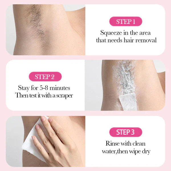 QUICK & CONVENIENT APPLICATION - Apply, wait 5-8 minutes, and rinse for salon-quality results at home. No tools or expertise needed—just smooth, hair-free skin in minutes.