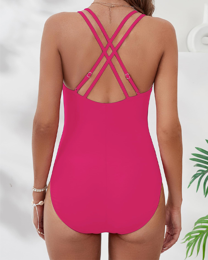 Shesways® V-Neck Tummy Control One-Piece Swimsuit – Crisscross Back & Elegant Waist Detail