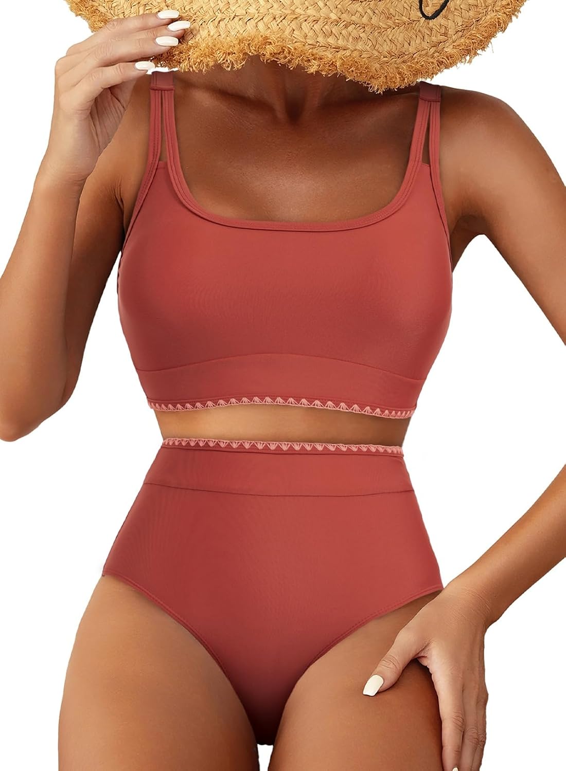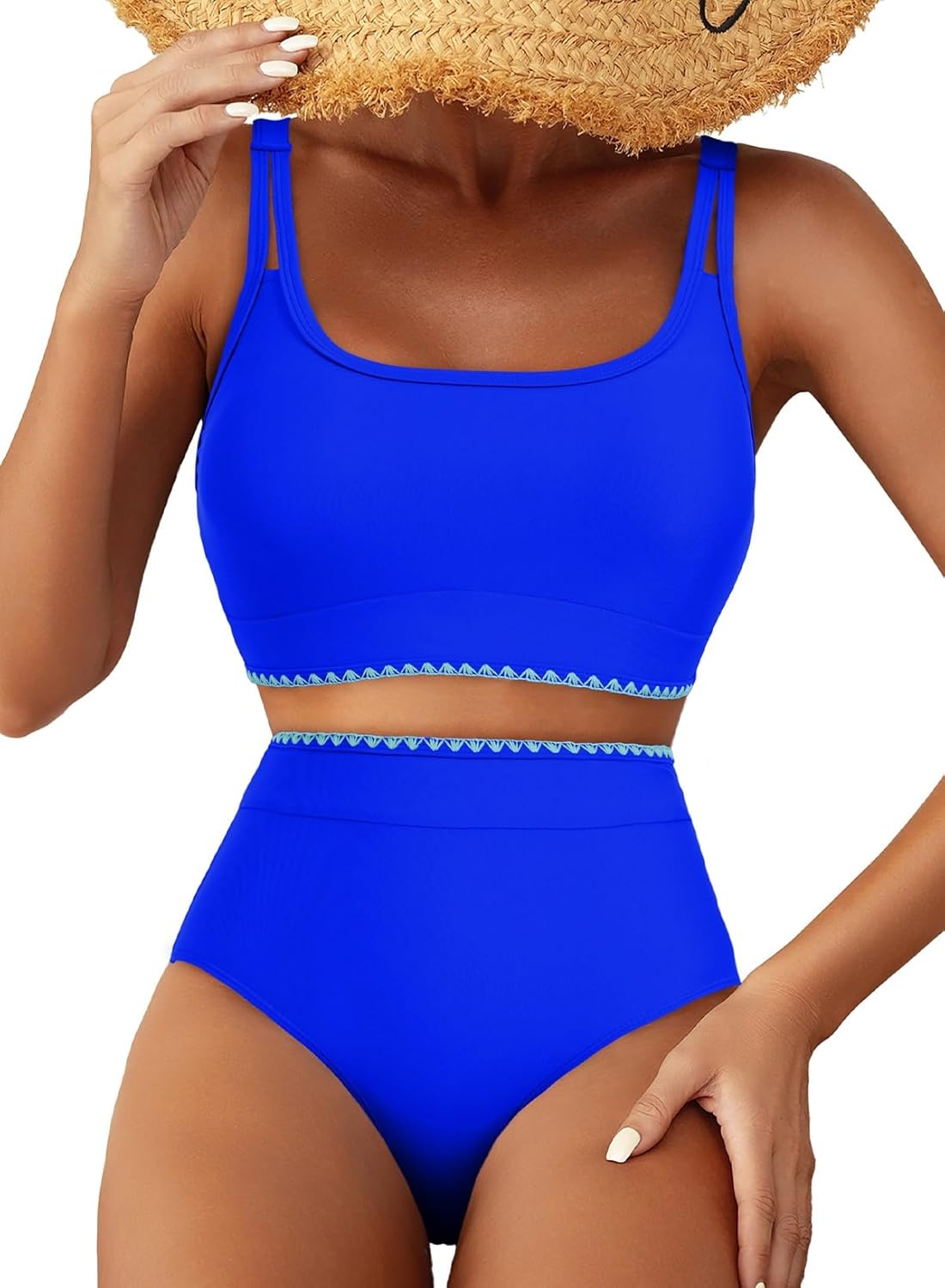 - Features: The bikini top features a round neck, adjustable shoulder straps, and built in removable padding to provide better support for the busts. The high waisted bikini bottom has sufficient coverage to better control the tummy