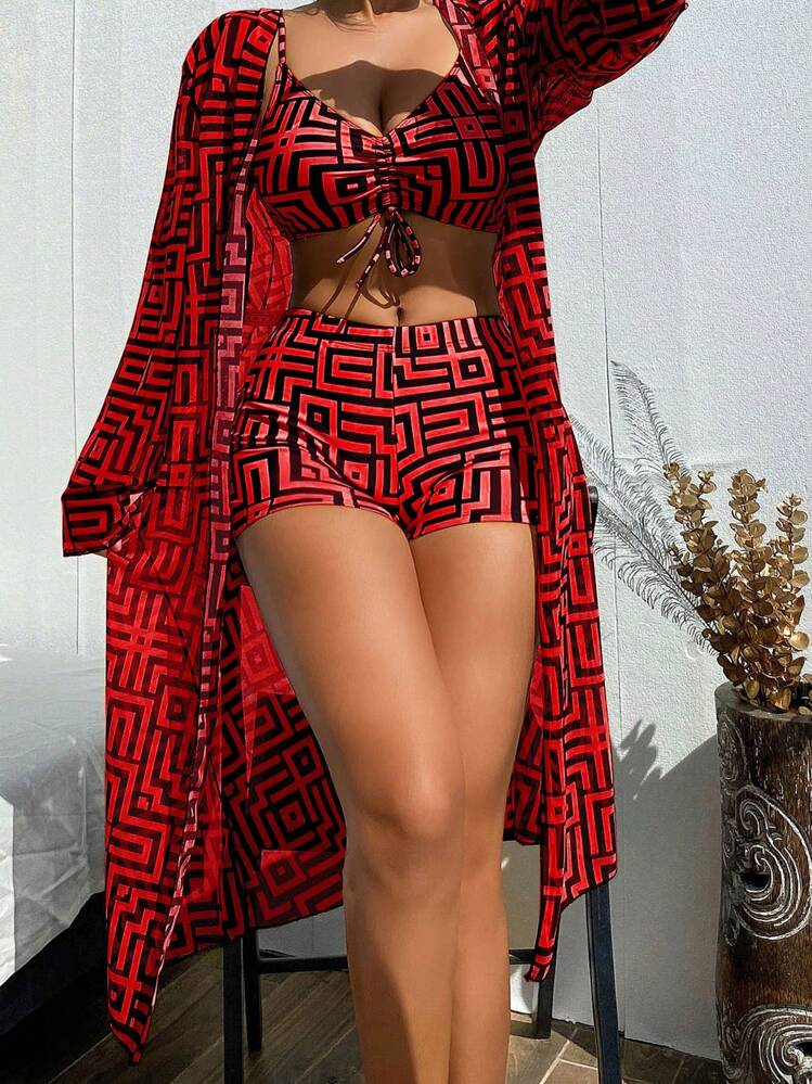 Shesways® 3-Piece Boho Bikini Set – High Waist & Kimono Cover-Up