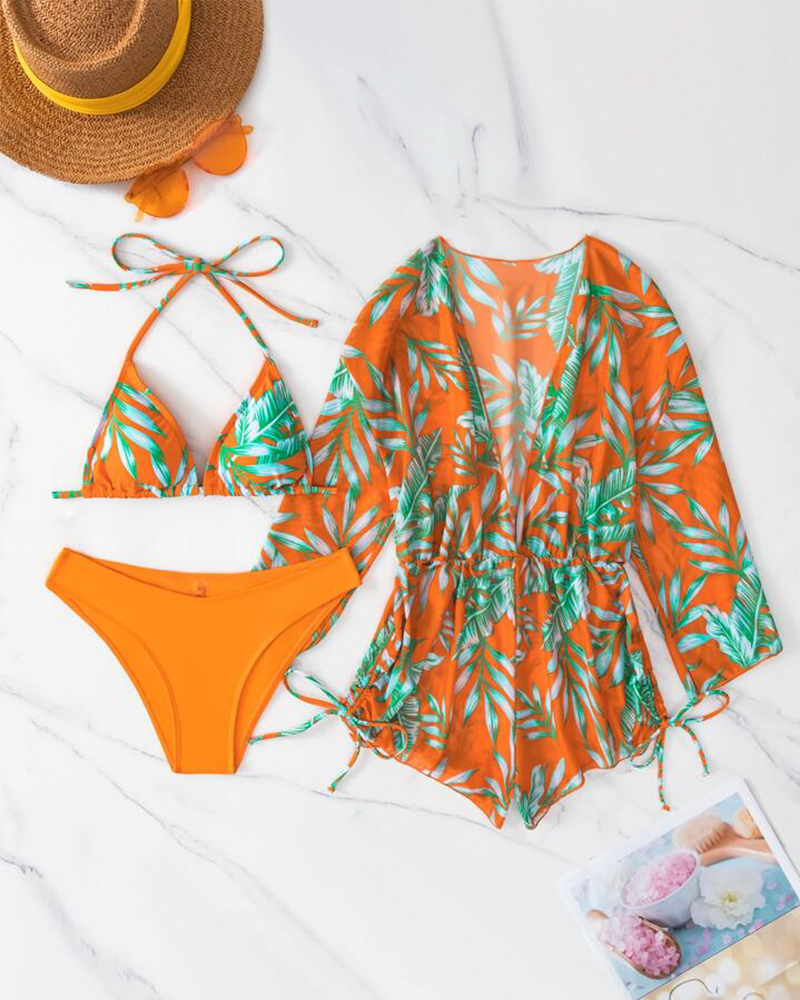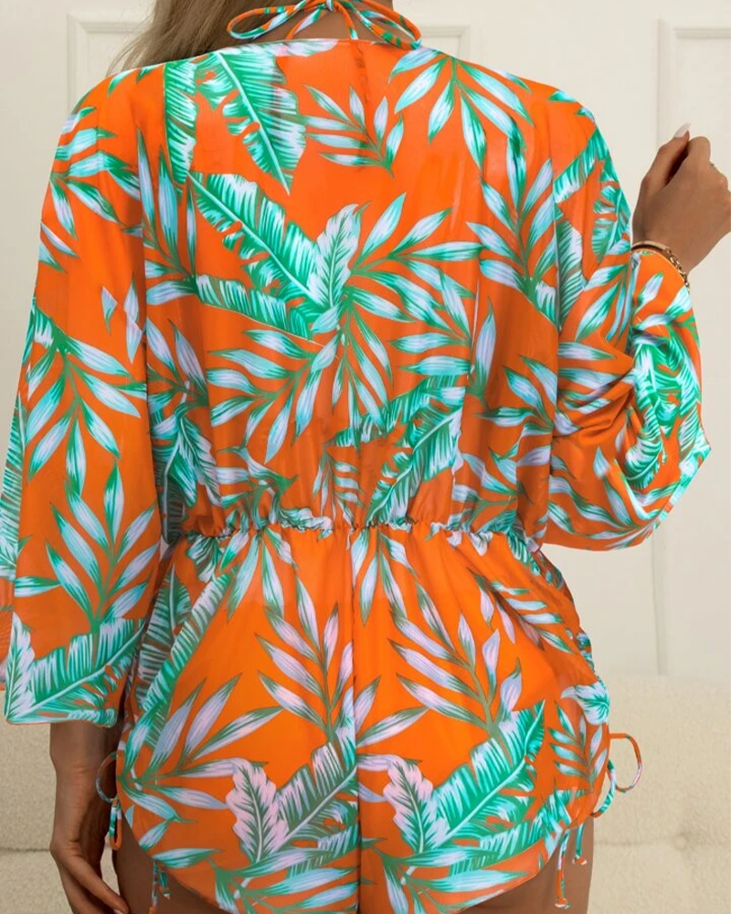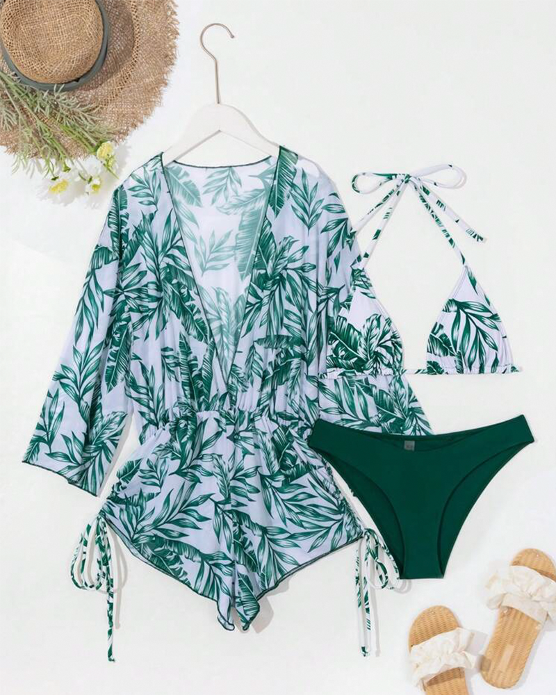 Shesways® 3-Piesce Tropical Bikini Set – Halter Top, High-Waist Romper & Swim Panty