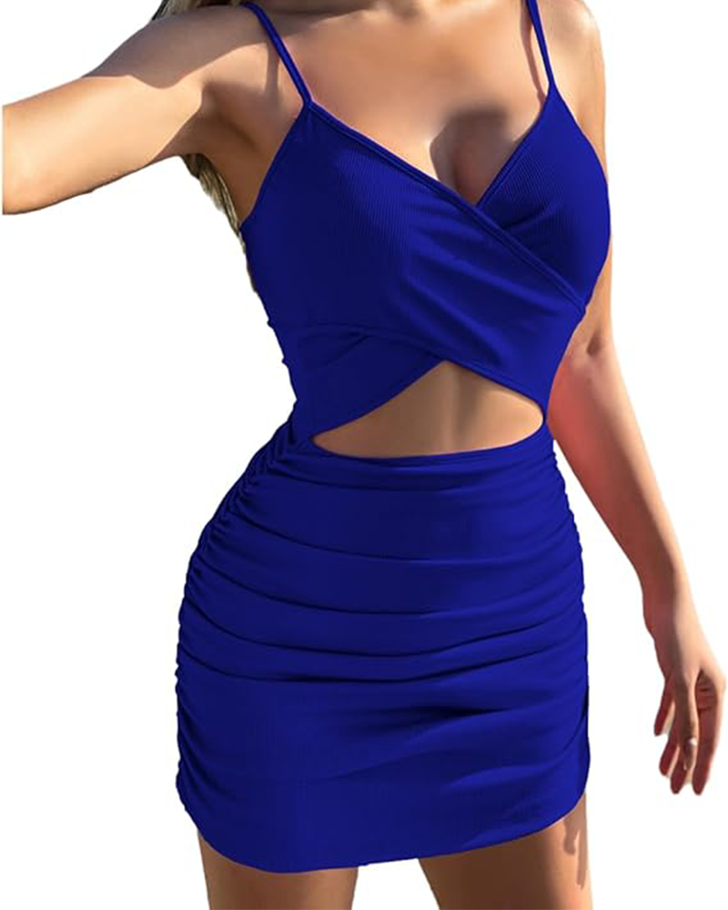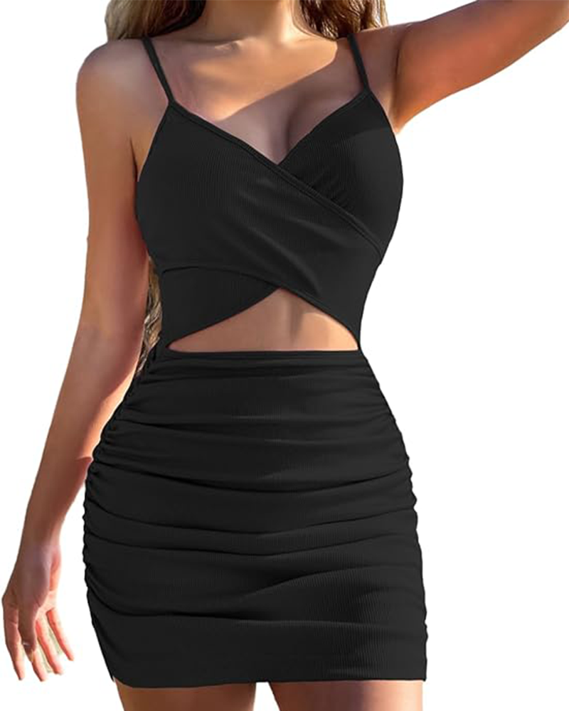 Shesways® Cut-Out Ruched Bodycon Mini Dress – Sexy Sleeveless Clubwear