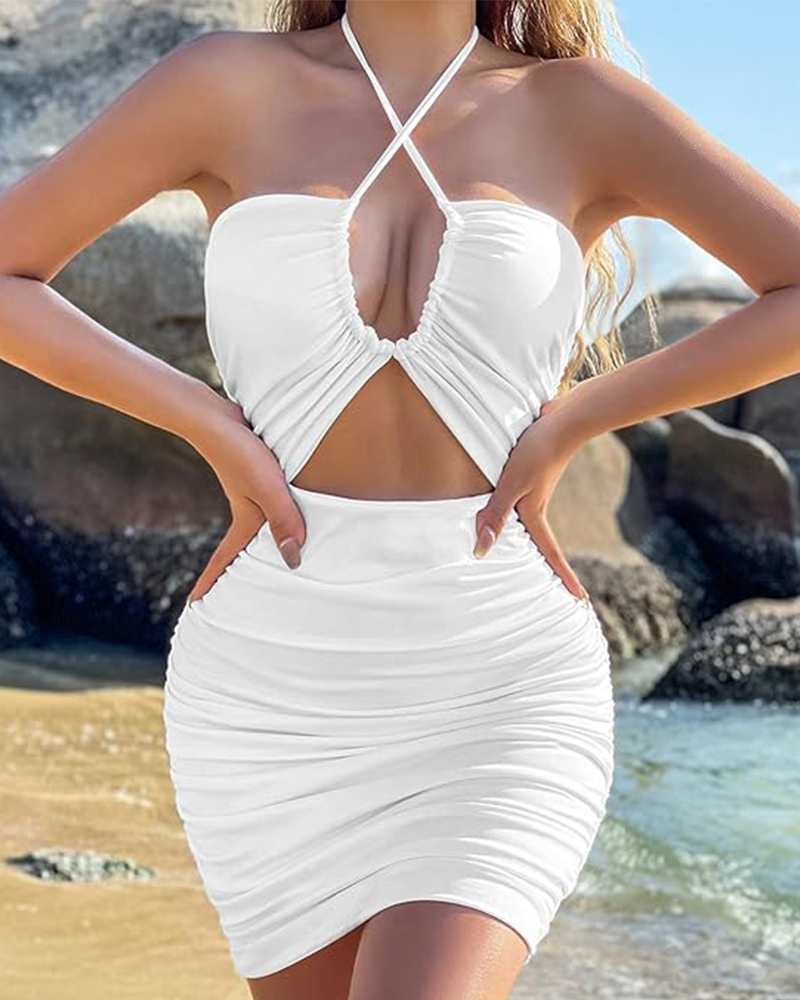 • Chic Design: Front cut-out, halter strap neckline, and elegant ruched texture