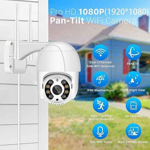 Anksono 1080P Security Camera Outdoor, PTZ Camera with Color Night Vision, Pan & Tilt 360° View, 2.4G WiFi Home Camera, CCTV Camera, Motion Detection, Real-time Notification, 2-Way Audio, IP66